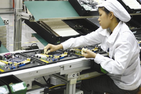 Công nhân Việt Nam trong một nhà máy sản xuất của doanh nghiệp nước ngoài. Cái làm nên năng suất lao động không chỉ là sự cần mẫn, nó còn là vốn, công nghệ, óc sáng tạo, cách tổ chức sản xuất.Ảnh: MINH KHUÊ