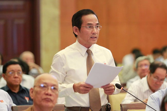 Đại biểu HĐND TPHCM Thái Tuấn Chí phát biểu tại phiên thảo luận tổ HĐND thành phố sáng nay 10-12 - Ảnh: Văn Nam
