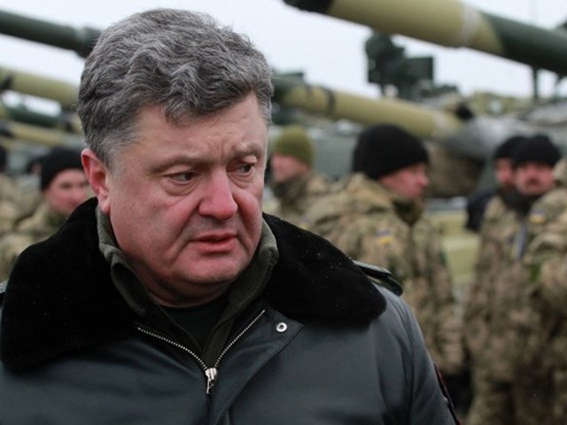 Tổng thống Ukraine Petro Poroshenko trong một chuyến thăm quân đội. Ảnh: Reuters
