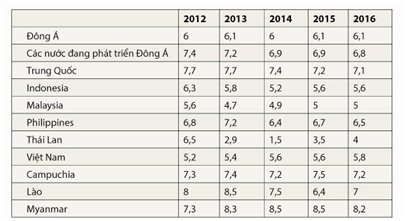 So sánh với các nước trong khu vực, có thể dễ dàng nhận thấy tốc độ tăng trưởng của kinh tế Việt Nam thấp hơn Campuchia, Lào và Myanmar trong những năm gần đây (xem bảng).