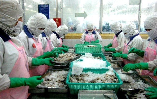 Công nhân đang làm việc tại một nhà máy chế biến tôm xuất khẩu. Ảnh: TL.