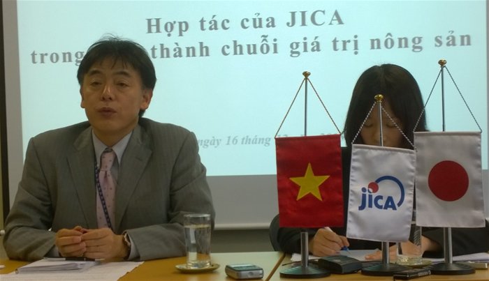 JICA đã phối hợp với Bộ Nông nghiệp và Phát triển Nông thôn, chính quyền địa phương các tỉnh như tỉnh Nghệ An, tỉnh Lâm Đồng và những đối tác thuộc khu vực tư nhân để thực hiện các hoạt động trong khuôn khổ tầm nhìn trung dài hạn. Tôi xin giới thiệu mô hình nâng cao năng lực sản xuất và giá trị gia tăng, phát triển sản phẩm và chế biến thực phẩm có ứng dụng công nghệ thông tin.